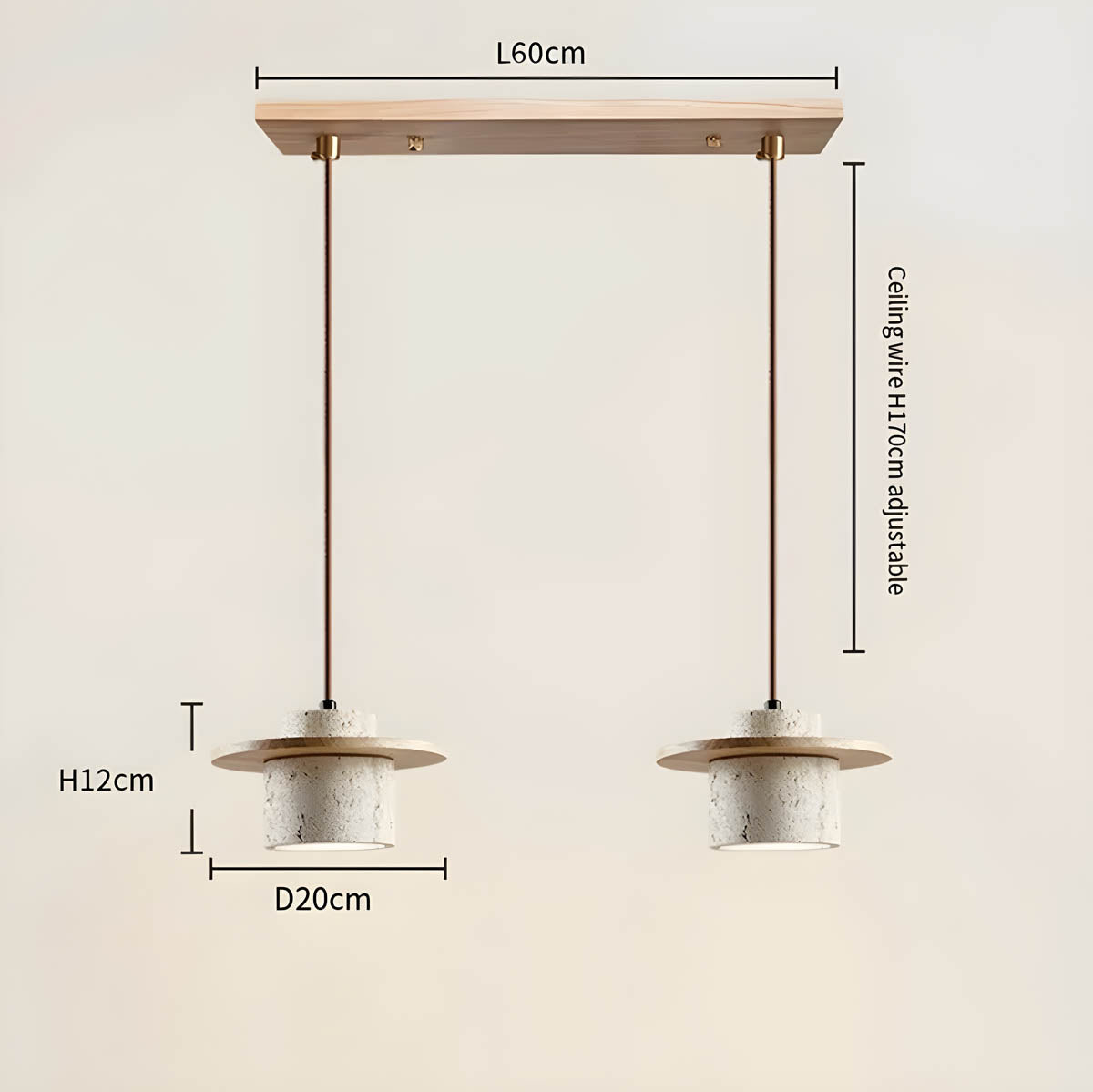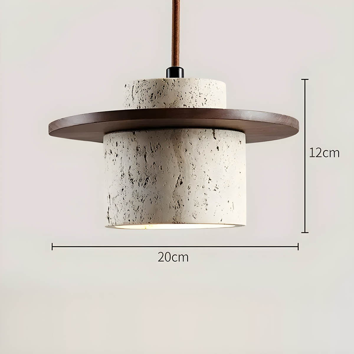 Deze hanglamp is gemaakt van hoogwaardig travertijn en hout en straalt ingetogen luxe en verfijning uit, waardoor hij perfect past in elk modern interieur.