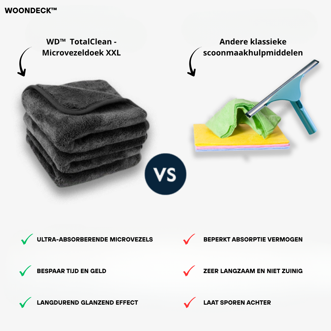Zeg vaarwel tegen saaie schoonmaakdoekjes die niet werken. Deze premium microvezeldoek levert professionele resultaten in seconden. Je hoeft minder hard te boenen, gebruikt minder schoonmaakmiddel en ziet direct resultaat — glans gegarandeerd!