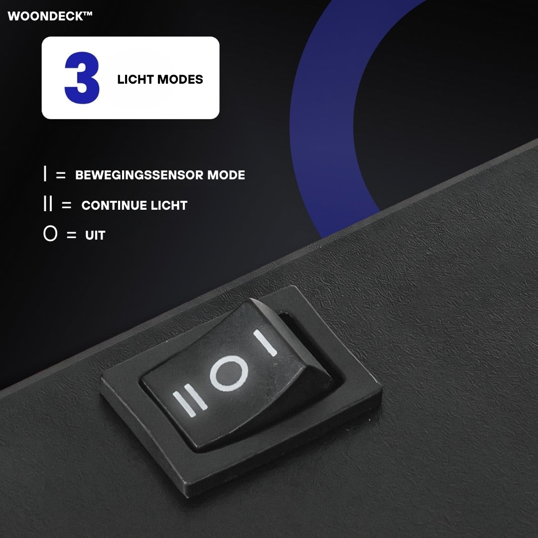 Slimme bewegingssensor – Zet automatisch aan wanneer beweging wordt gedetecteerd bij weinig licht.
