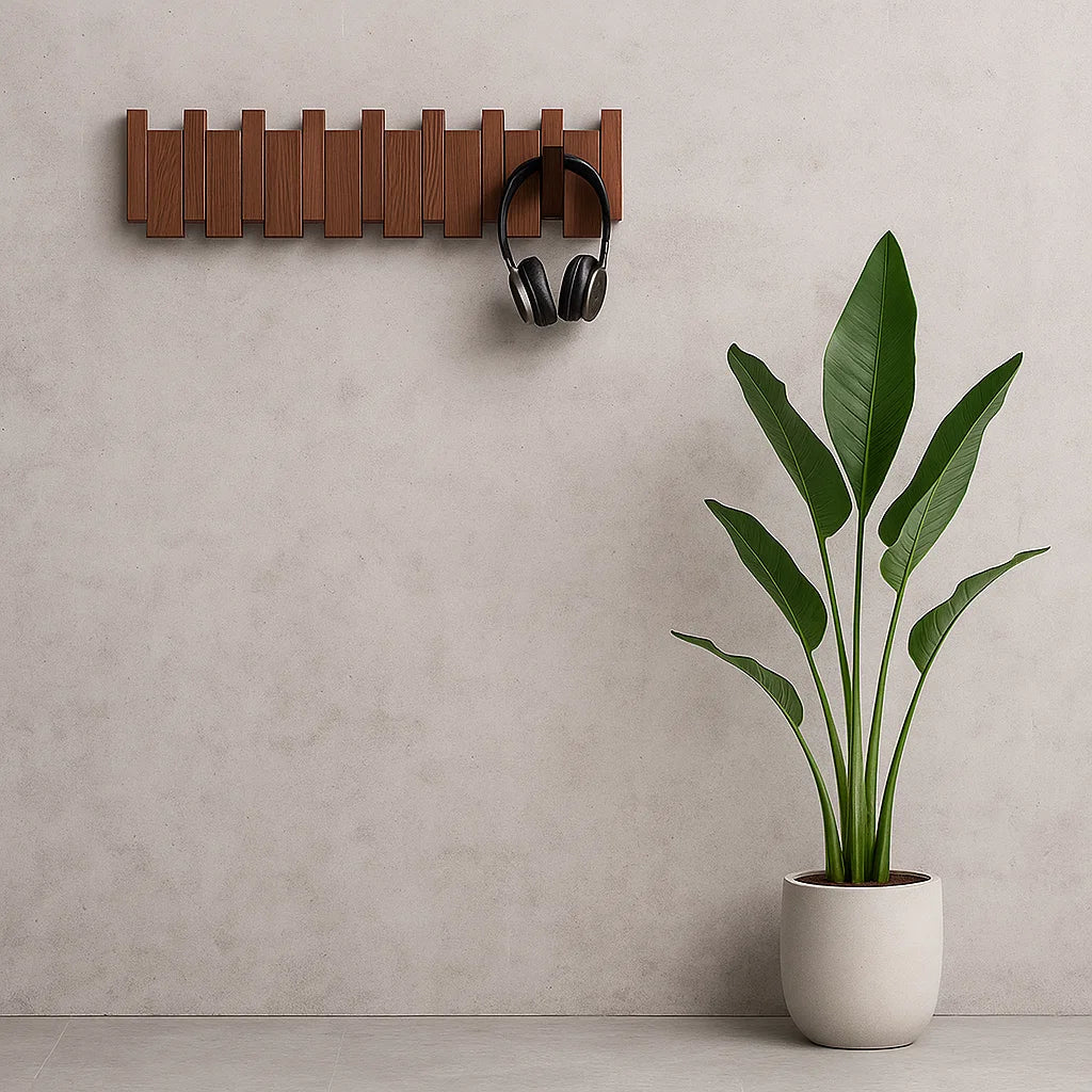 De grootste luxe in een modern huis is rust en ruimte. De Moki Kapstok is ontworpen om dat gevoel te maximaliseren. Geïnspireerd door de natuur, blijft zijn profiel zelfs met uitgeklapte haken slank en subtiel. Ideaal voor plekken waar elke centimeter telt. Creëer een georganiseerde entree die ademt, zonder in te leveren op bewegingsvrijheid.
